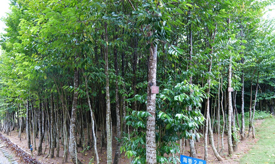 位于屯昌县坡心镇的海香园土沉香苗木繁育基地,沉香林木郁郁葱葱。该基地今年8月份挂牌海南省沉香省级林木种质资源库。